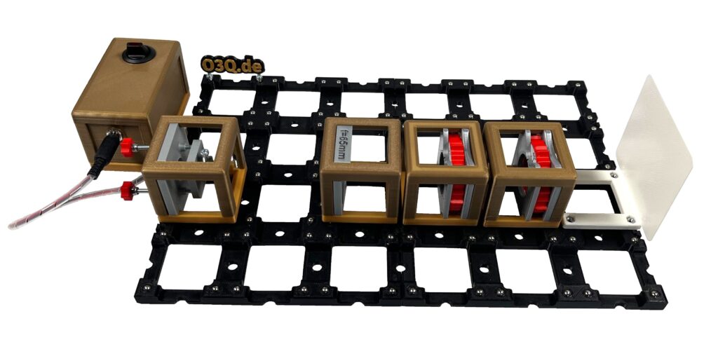 Es können verschiedene Experimente zur Untersuchung von Beugung und Interferenz mit Gittern und Spalten durchgeführt werden. So lassen sich beispielsweise die Interferenz an Einzel- und Doppelspalten sowie die Beugung an Transmissionsgittern untersuchen. Der Aufbau bietet einen intuitiven und praktischen Zugang zur Wellenoptik und den grundlegenden Eigenschaften des Lichts. Weitere Informationen finden Sie hier.