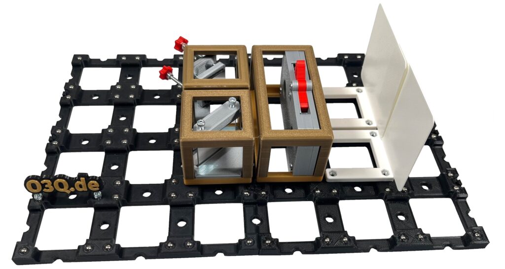 Das Michelson-Interferometer kann schnell und einfach zusammengesetzt und justiert werden. Der modulare Aufbau lädt zum ausprobieren ein und ermöglicht eine intuitive Auseinandersetzung mit Interferenzphänomenen. Durch Ergänzung eines Piezobausteins lassen sich auch quantitative Messungen durchführen, bspw. zur Demonstration quantenmechanischer Überlagerungen oder zur Untersuchung winziger Längenänderungen auf der Skala von Wellenlängen. Weitere Informationen finden Sie hier.