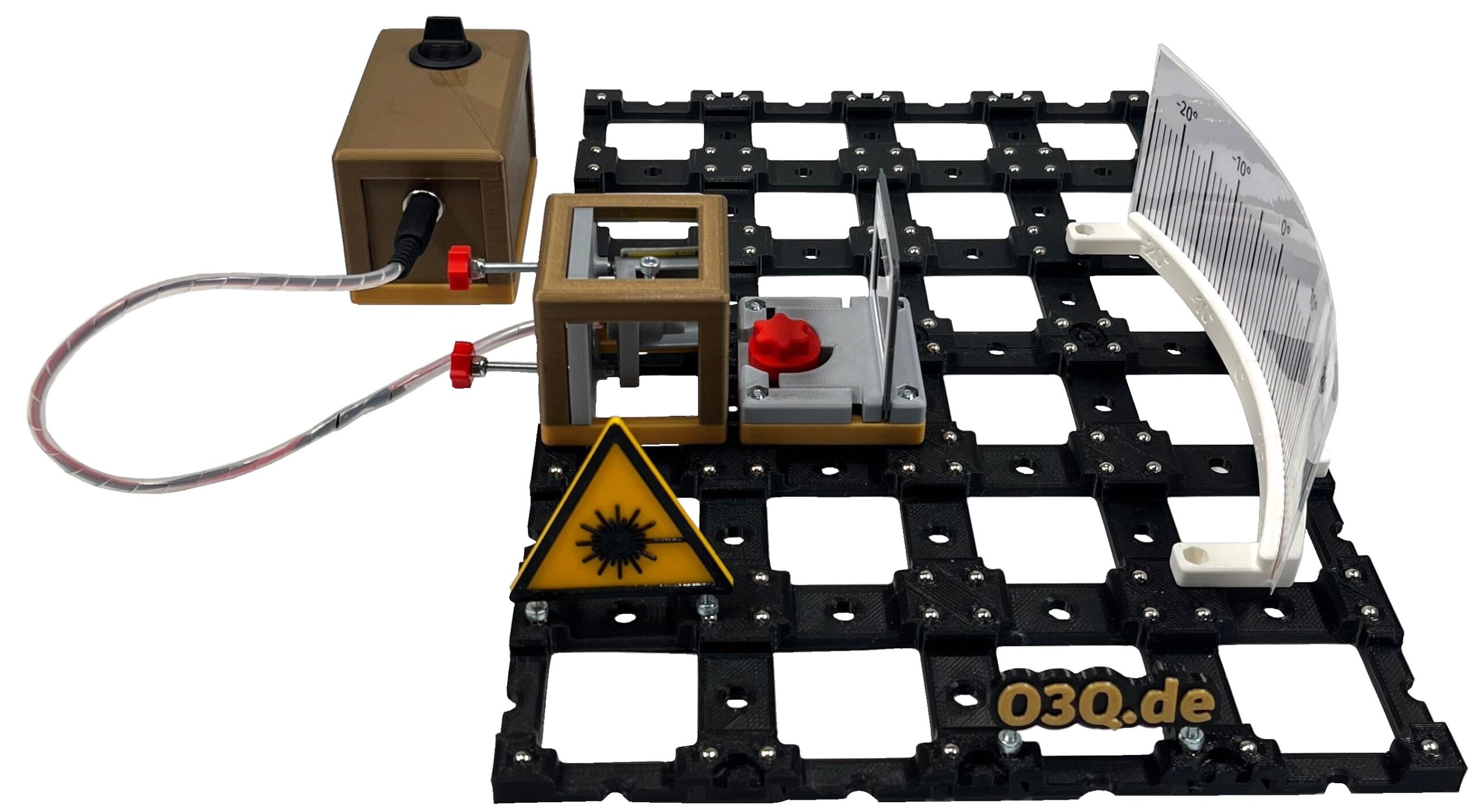 Das Experimentiermodul enthält einen speziell entwickelten Gitterhalter, der handelsübliche Experimentierraster, Beugungsgitter oder Spaltblenden sicher fixiert. Dadurch lassen sich verschiedene Gittertypen flexibel einsetzen und untersuchen. Die Kombination mit einer kohärenten Lichtquelle, wie einer Laserdiode, ermöglicht die Darstellung von Interferenzmustern und Beugungseffekten.
